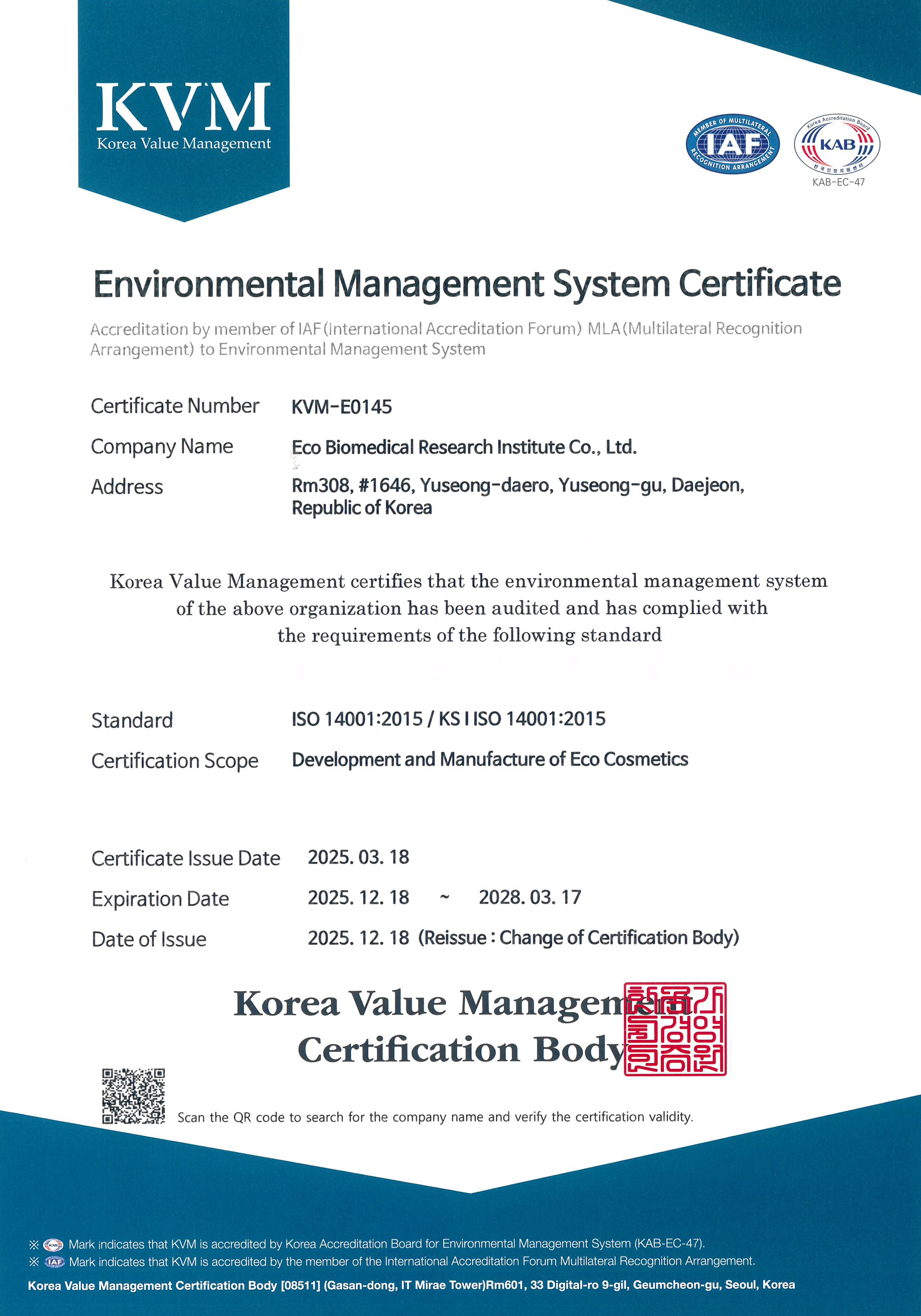 환경경영시스템 인증서