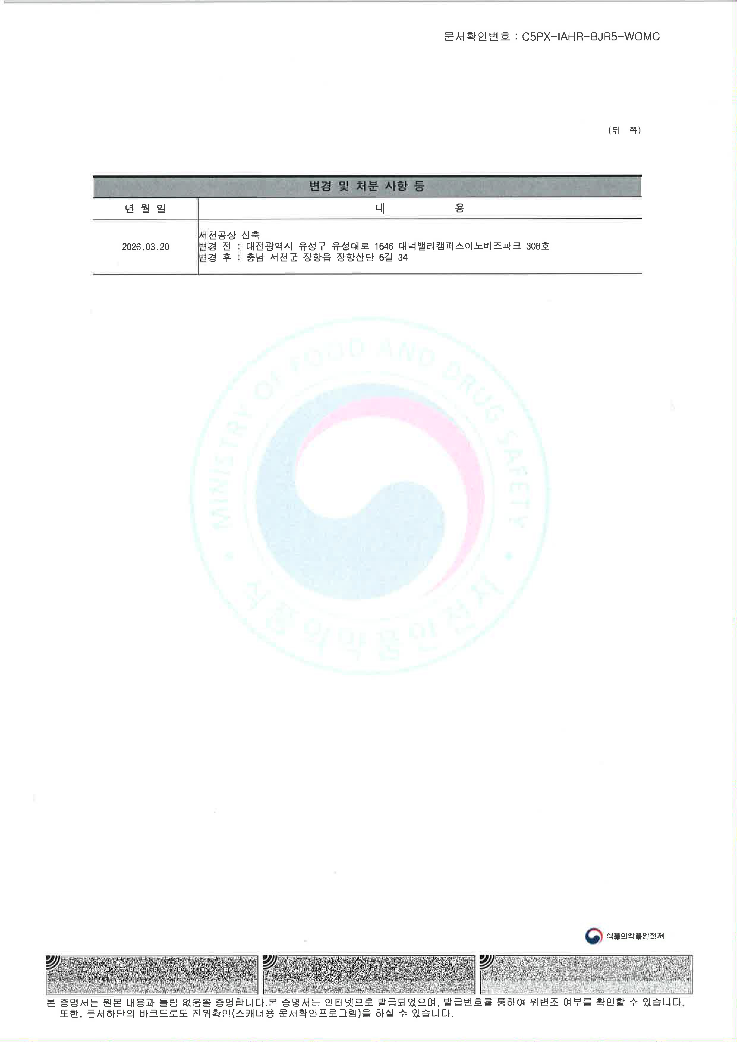 • 화장품 제조업 등록필증
